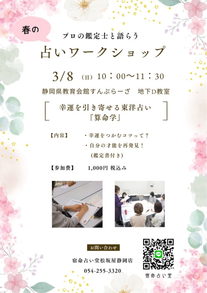 3/8(日)算命学のワークショップ開催決定!